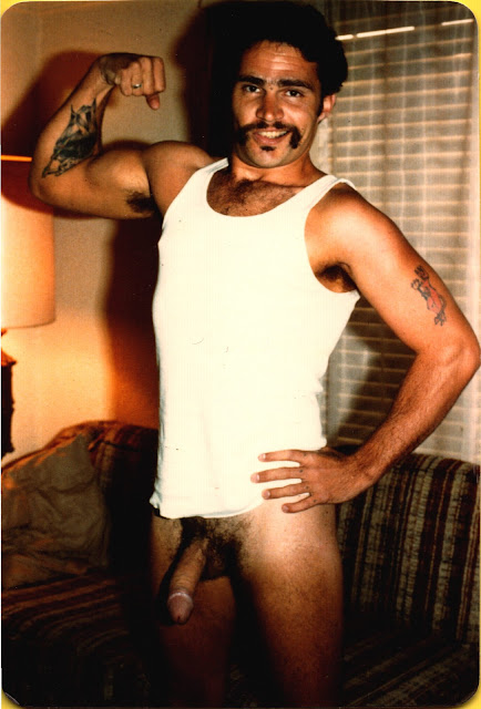 Ron Orlando at Old Reliable in the mid 80s who called him Dirty Ron. Ron was one of Freddie Orlando's four brothers. (See my post from two days ago.). Both guys posed for AMG in the 70s. Ron did two films there that I've never seen, then he disappeared for a few years before coming to OR. Gee...I wonder where he was? I think these photos are from his first session there.